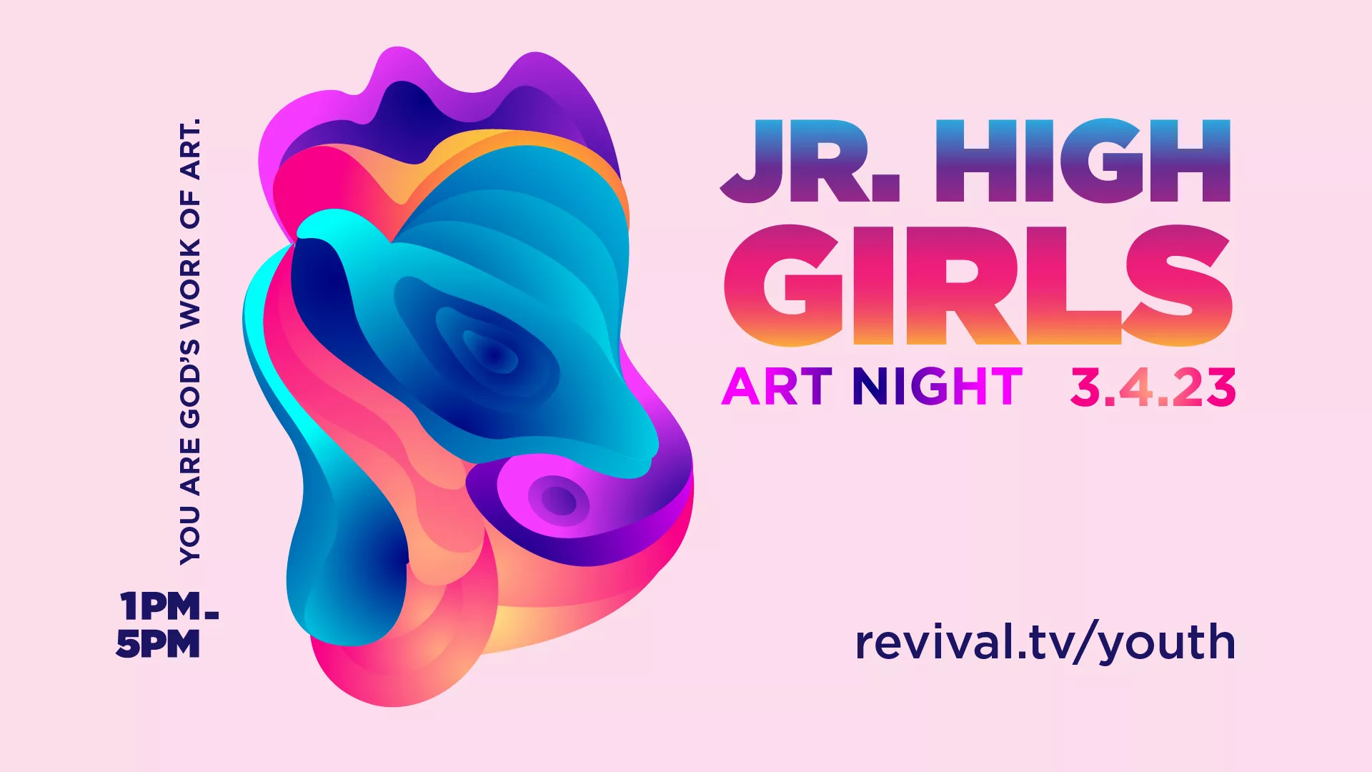 Jr. High Girls Art Night Jr. High ladies, join us on Saturday, March 4, from 1:00-5:00 PM for our Art Night.