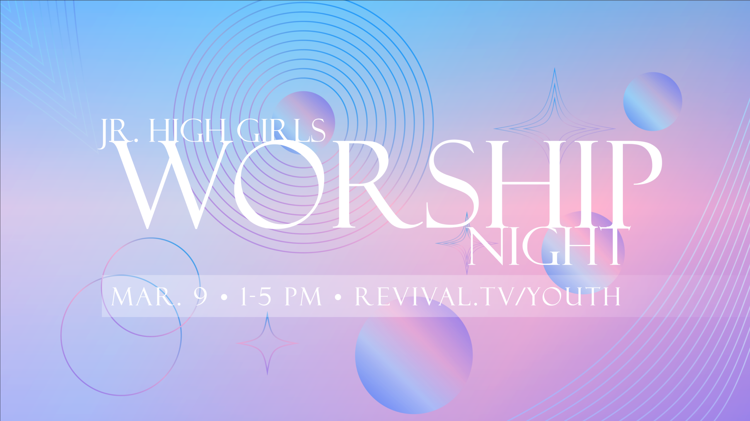 Don’t miss a night of worship on Saturday, March 9, from 3:30-7:30 PM. Jr. High Girls, this night of worship will bless and encourage you as we gather together in song, giving all glory and honor to our God.