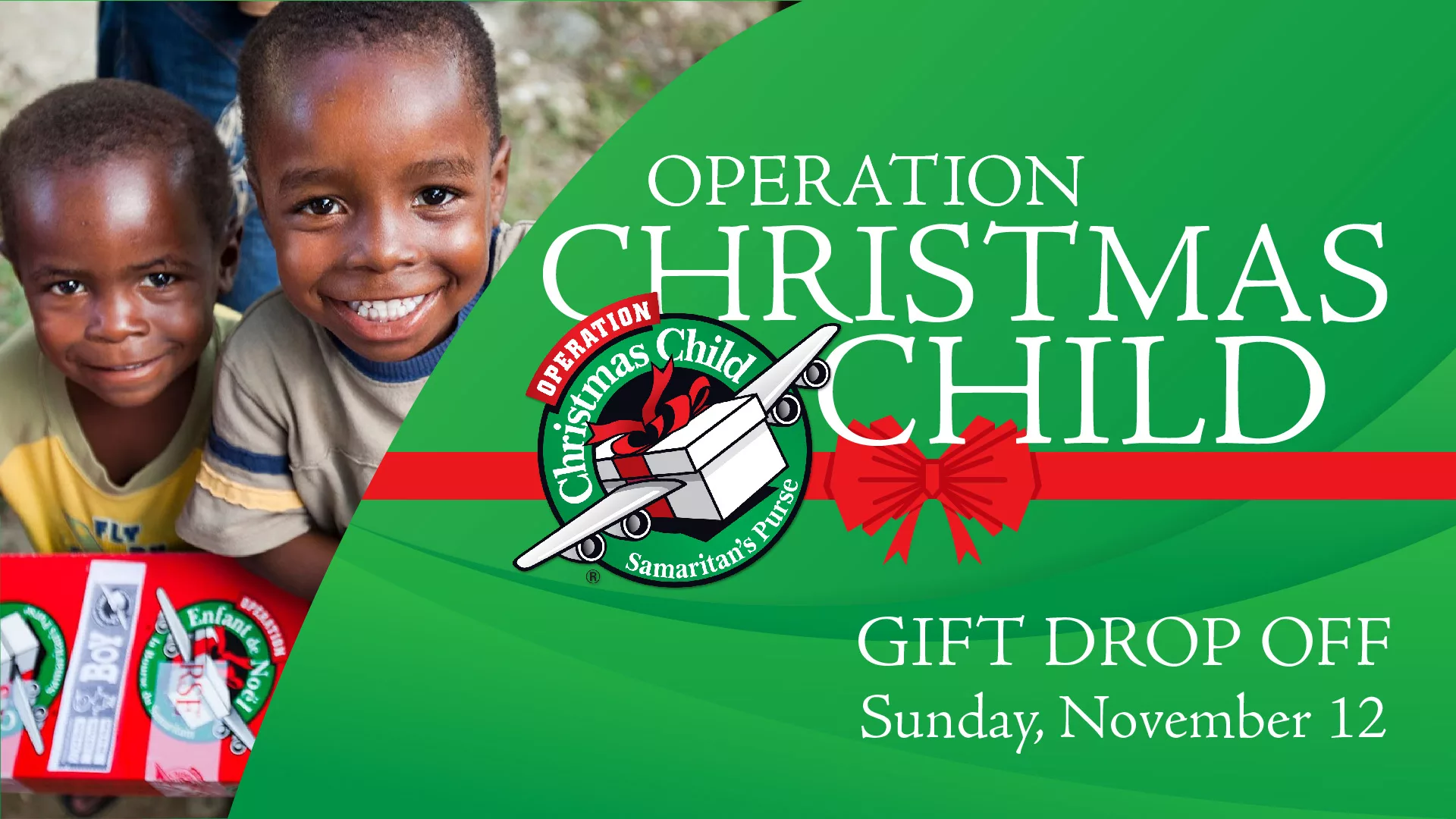 If you’d like to be a part of giving a shoebox, pick up an Operation Christmas Child box after service and drop your shoeboxes off by Sunday, November 24.